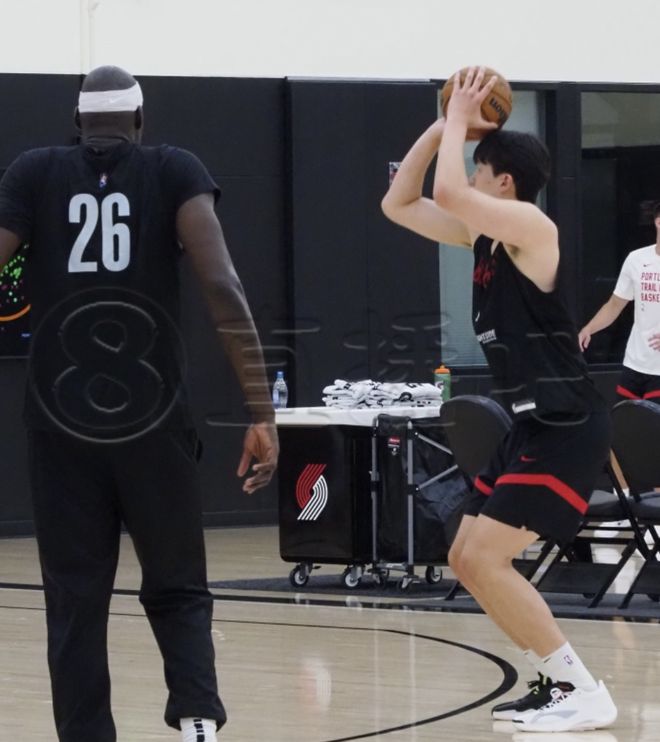 开拓者队内训练里,杨瀚森在跑战术,先是跑到弧顶,接到助教传球之后出手三分,杨瀚森2次出手弧顶三分全部打铁。接下来又回到底角位置去投三分,底角位置杨瀚森第一轮出手2次也只命中了1球,跟他一组的里斯投得那可是非常准的。接下来杨瀚森第2组投篮的时候,又是出手2次并没有能够命中,左侧底角的三分投出了4中1的命中率,回到右侧底角,他第一组出手三分是2投1中,整体上是6中2。随后第2组的时候,杨瀚森又去底角命中1次三分,总命中率来到了7投3中。