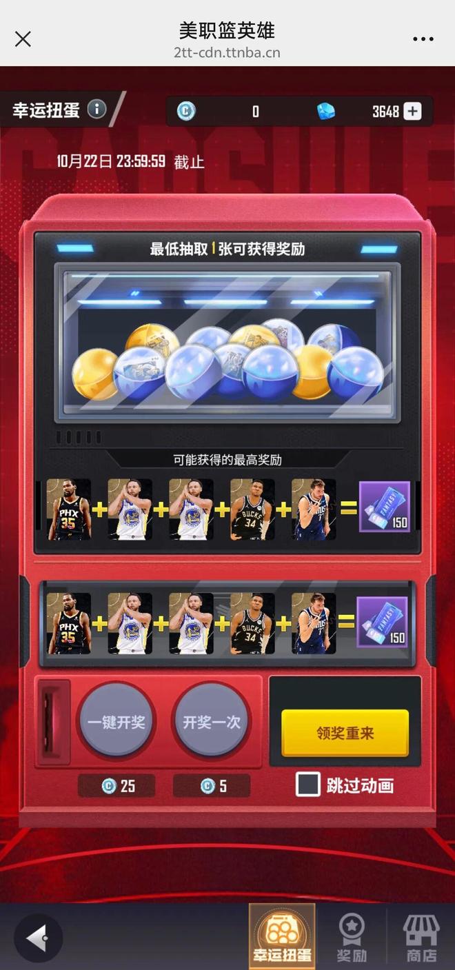 NBA英雄2最新活动幸运扭蛋来袭扭出五张一样的扑克牌就有铂金招募券!不同的搭配组合还有各种丰富大奖!不管是图一乐还是博大奖,都值得一试!