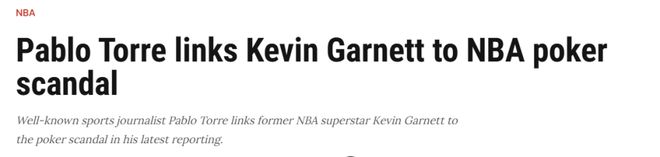 “有多名前职业运动员参与了由司法部‘皇家同花顺行动’起诉人员组织的私人扑克游戏。据多名直接了解2019年某场游戏情况的消息人士透露,加内特就是其中之一。”该报道并未称这位2008年NBA总冠军得主协助比卢普斯操纵游戏,仅指出加内特可能出席过其中一场扑克游戏。此外,托雷还提到 “有多名前职业运动员参与了私人扑克游戏”,这意味着未来几天可能会有更多与加内特处境相似的人物名字被曝光。