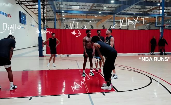 那是一场发生在训练营第一周的对抗游戏,规则很简单:球员在中距离接球,进攻时间从正式比赛的24秒缩短到5秒。在这5秒之内,你必须自行创造出出手机会。来自贝勒大学的新秀埃奇库姆,先是命中一记高难度中距离跳投,接着又用左手高打板上篮得分。另一边的全明星后卫马克西则用速度突破直取篮下,随后命中一记转身跳投。那场对抗激烈、充满身体碰撞,更重要的是,这样的对练有着相当大的参考价值,主要测试球员在时间压力下、空间有限时,仍能为自己创造出得分机会的能力,而这往往是明星球员的标配。