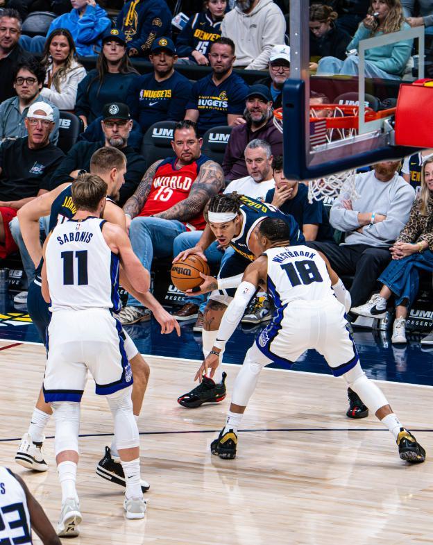 赛前不被看好的国王,能够在丹佛高原客场没有一溃千里,反倒是和掘金打得有来有回,战旧主的威少功不可没,此役威少不仅找回了巅峰状态的中投,甚至三分球都非常精准,四节战罢17次出手命中10球,其中包括6投3中的三分球,贡献了26分、12个篮板、6次助攻和2次抢断的全面个人数据。在威少的带动下,国王此役也打得非常有活力,一共用7名球员得分达到了两位数,其中小萨博尼斯虽然防守端没有限制住约基奇的发挥,但自己进攻端表现尚可,砍下了13分、17个篮板和5次助攻的两双数据,不过上一场狂砍31分率队击败雄鹿的拉文,此役手感冰凉只有11投4中的发挥,仅仅得到了15分。