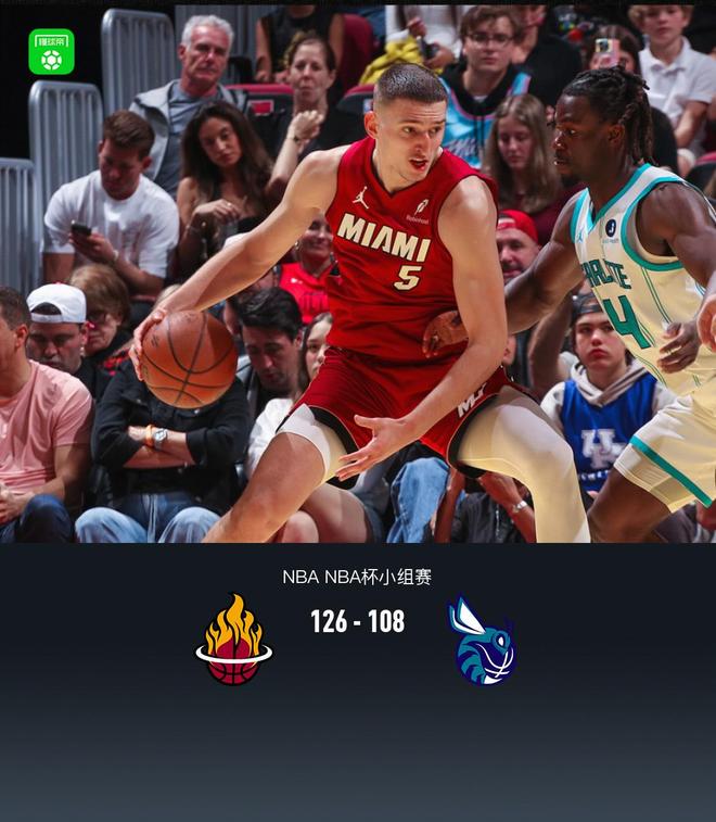 北京时间11月8日NBA NBA杯小组赛,迈阿密热火对阵夏洛特黄蜂。半场热火72-69黄蜂,最终热火126-108黄蜂。迈阿密热火诺曼-鲍威尔25分4板3助,维金斯22分3板3助;夏洛特黄蜂克努佩尔30分8板3助,特雷-曼20分9板7助。赛况第一节热火诺曼-鲍威尔拿下11分,黄蜂特雷-曼拿下13分,首节战罢热火53-33领先黄蜂第二节热火维金斯拿下7分,黄蜂克努佩尔拿下14分,半场结束热火72-69领先黄蜂第三节热火诺曼-鲍威尔拿下8分,黄蜂迈尔斯-布里奇斯拿下6分,第三节结束热火94-88领先黄蜂第四节热火哈克斯拿下8分,黄蜂克努佩尔拿下9分,最终热火126-108战胜黄蜂球员全场数据迈阿密热火诺曼-鲍威尔25分4板3助,维金斯22分3板3助1断1帽,拉尔森20分4板2助1断;夏洛特黄蜂克努佩尔30分8板3助1断1帽,特雷-曼20分9板7助1断,迈尔斯-布里奇斯14分12板7助1帽。首发阵容迈阿密热火:诺曼-鲍威尔,维金斯,拉尔森,达维昂-米切尔,凯尔-韦尔;夏洛特黄蜂:克努佩尔,特雷-曼,迈尔斯-布里奇斯,赛恩-詹姆斯,卡尔克布伦纳。