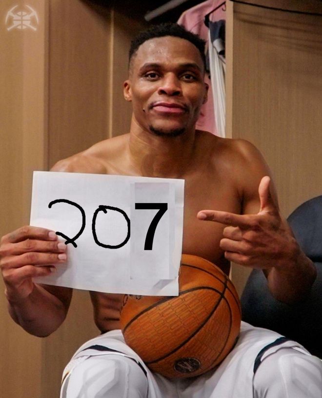 此役后威少继续创造纪录:1.达成207次三双继续刷新历史三双榜的上限;2.威斯布鲁克仅用三节时间就拿下本赛季第4次三双,仅次于约基奇、吉迪;3.这是威少第135次砍下20+三双,反超约基奇登顶20+三双历史榜首;