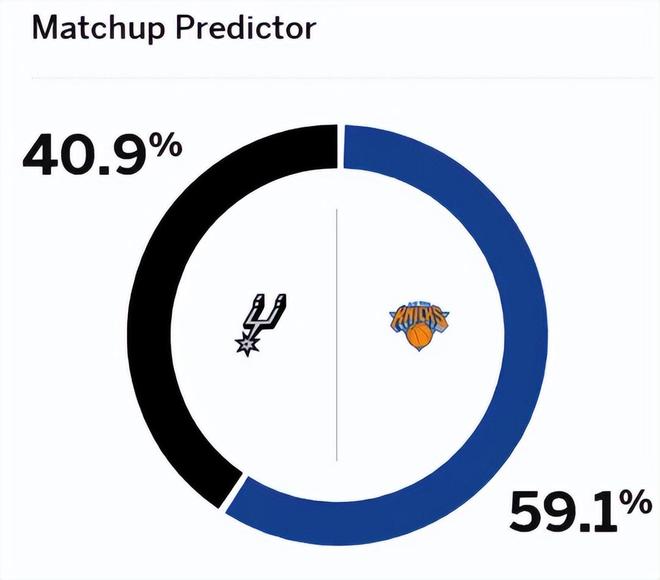 赛前,美媒ESPN对本场比赛进行了胜率预测,尼克斯胜率为59.1%,略占上风,马刺队胜率则仅有40.9%。 。首发阵容方面,马刺队这边,文班亚马可以出战,教练排出的最新首发五人组为:哈里森-巴恩斯、斯蒂芬-卡斯尔、达龙-福克斯、德文-瓦塞尔、卢克-科内特;尼克斯这边,首发阵容则为:布伦森、布里奇斯、阿奴诺比、哈特、唐斯。