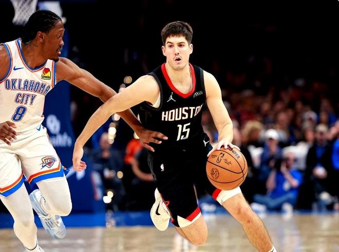 易边再战,小史密斯连中两记三分,申京顺下送低手妙传,奥科吉底线空切完成双手暴扣,火箭开局打出10-2反超比分。多尔特里突外投连拿5分,止住颓势。杜兰特单打强突切特上篮2+1,后者4犯无奈被换下。威金斯接球三分手起刀落命中,杰威和卡鲁索接连反击得手,雷霆重新领先到8分。JD-戴维森三分急停命中后再跳投得手,三节打完,火箭77-75落后雷霆。