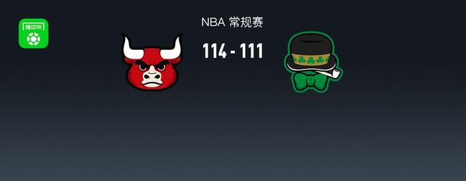 第四节公牛帕特里克-威廉姆斯拿下8分,凯尔特人德里克-怀特拿下10分,最终公牛114-111战胜凯尔特人