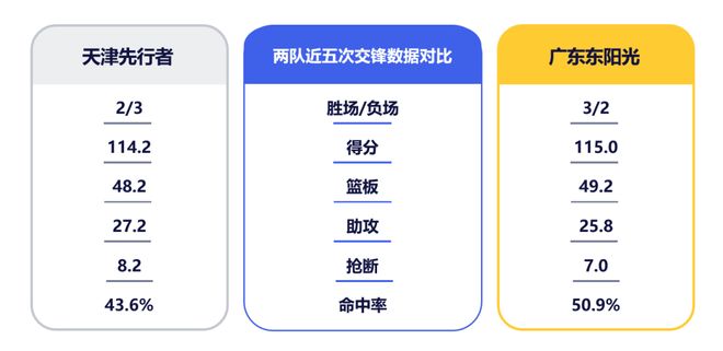 12月30日,CBA常规赛第8轮,广东东阳光将在客场迎来2025年最后一场比赛,对手为天津先行者男篮。双方上赛季交手2次,广东队保持全胜。天津队当前战绩虽为1胜6负,但其曾在客场28分大胜南京,与山西、北控交手时也仅以较小分差惜败,具备制造冷门的实力。此番客场面对天津,广东队需保持警惕,不可轻敌。 天津队投篮命中率排名第七,三分出手数、三分命中数均进入前六,郑昊燃、哈姆雷特、林庭谦和詹姆斯等均拥有外线稳定输出的能力。作为球队进攻大核,林庭谦场均可贡献21.7分,场均出手数暂居联盟榜首。强力外援詹姆斯和哈姆雷特在天津队效力多年,已深度融入球队战术体系,两人场均可合砍34分。此役,广东队仍需提升防守针对性和压迫力,尤其要限制对方几名核心射手,切断其传球路线,防止对手在外线找到投篮手感掀起攻势。 篮板控制力的争夺是本场对决的又一关键。天津队内线有詹姆斯坐镇,其以场均9.6篮板排在联盟第二,上赛季与广东队两次交手共摘下30篮板,统治力可见一斑。另一外援雷诺兹脚步灵活、弹跳出色,也能为球队提供篮板保障。广东队内线此战需轮换冲击、形成合力,尽量减少对方二次进攻机会,争取帮助球队在篮板端掌握主动权。此外,天津队快攻命中率和利用失误得分均排在第五位。本场比赛,广东队在对手高压防守下还需保持耐心,稳住自身进攻节奏,并注意控制失误。希望球队能够保持良好势头,继续打出属于我们的团队篮球!里 程 碑 数 据徐杰CBA生涯助攻总计为1345次,位列CBA历史助攻榜第34位,距离第33位的马尚·布鲁克斯(1351次)还差6次。两队数据对比 点击图片 进入官方小程序购票成为会员 可享专属购票优惠券