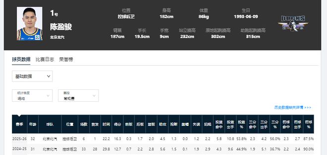 赵睿加盟北京男篮后,受战术影响,陈盈骏的出场顺序由首发变成了替补,也就是成为了球队替补阵容的核心领袖。24-25赛季常规赛,陈盈骏出场33次,仅5次替补身份。本赛季6场过后,他就已替补出场5次。