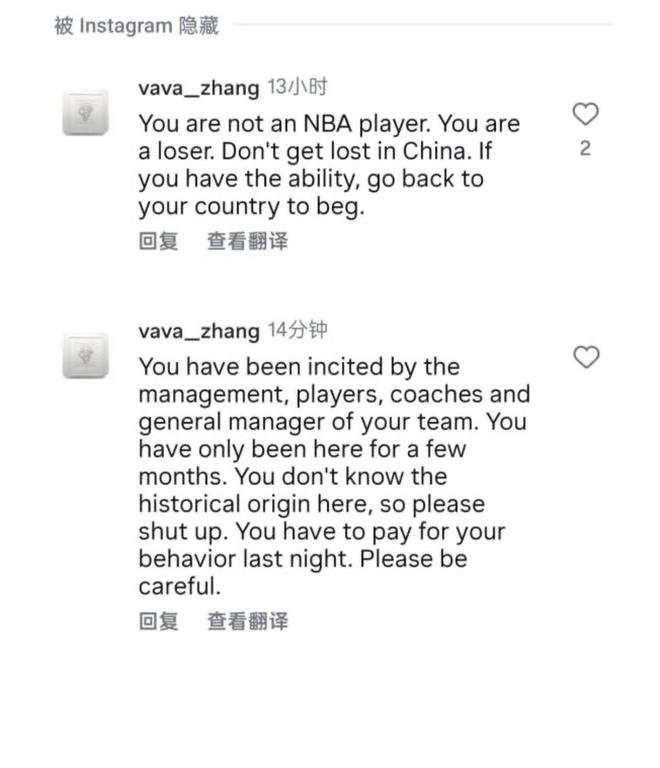 除了焦泊乔外,奎因也遭到了辽篮球迷的“清算”。奎因赛前曾经表示辽篮不是广东的宿敌,比赛时又用实际表现证明自己所言非虚,不过他的言语和行为在部分辽篮球迷看来“越了界”,不仅在比赛时就有辽篮球迷站起来骂他,赛后也有球迷集中在奎因的个人社交媒体下面对他进行围攻,表示“你不是一个NBA球员,你只是一个失败者”,还要奎因“回你的国家乞讨。”