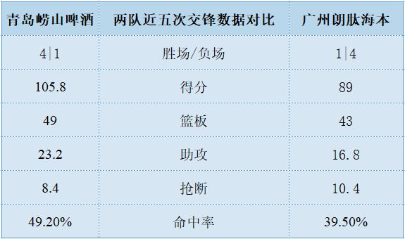 上赛季两队交手4次,青岛崂山啤酒4胜0负。