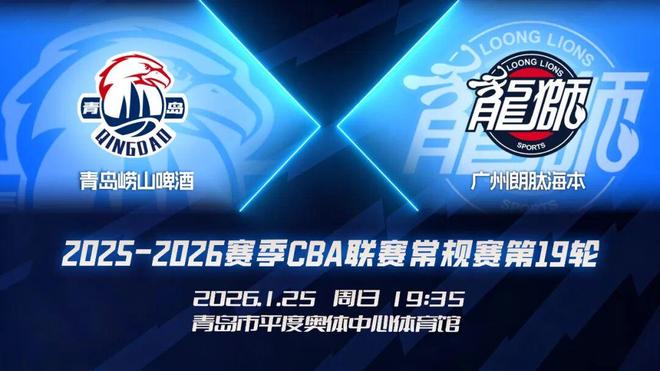 明晚19:35,2025-2026赛季CBA联赛常规赛第19轮,青岛崂山啤酒回到主场迎战广州朗肽海本,球队将积极调整状态,全力备战,带来精彩对决!