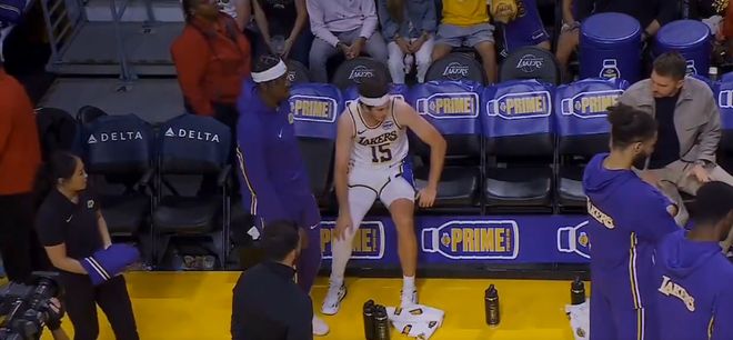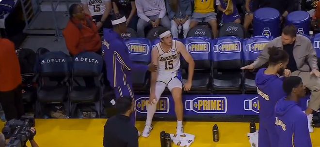 雷速体育10月13日讯 NBA季前赛继续进行,湖人今天在主场迎战勇士。第三节比赛中,里夫斯和波杰姆斯基相撞后,要求替换下场。在暂停期间,他仍留在湖人队的替补席上接受治疗。值得一提的是,东契奇在旁边告诉里弗斯:“今天就别打了,可以了。”