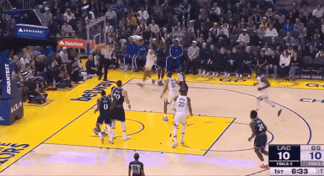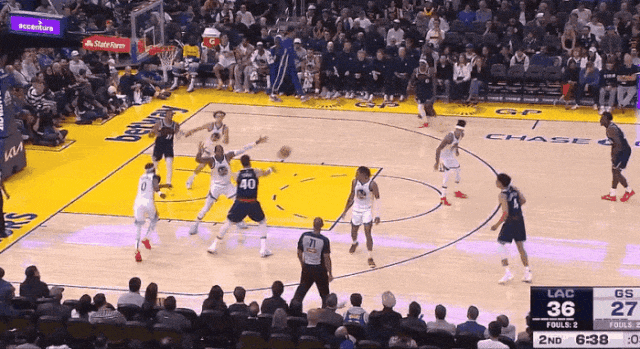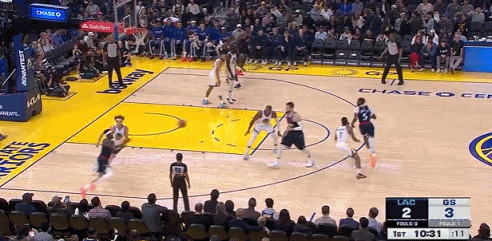 可以预见的是,在两大神控登哥和炮哥的双重BUFF下,他在快船表现保底太阳之上,能否重现当年很纯粹的得分小机器巅峰,暂时要画个小问号? 很快,比尔就拿到了快船生涯的首分,是罚球线食糊位(粤语,意思得心应手十拿九稳)急停干拔中投。
