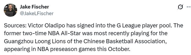 2018-19和2019-20赛季效力步行者队期间,奥拉迪波连续两年入选全明星。2013年至2023年,他在10个NBA赛季中辗转5支球队,职业生涯场均贡献16.9分、4.5个篮板和3.9次助攻。2025-26赛季发展联盟将于今日拉开帷幕,首日将安排10场比赛。