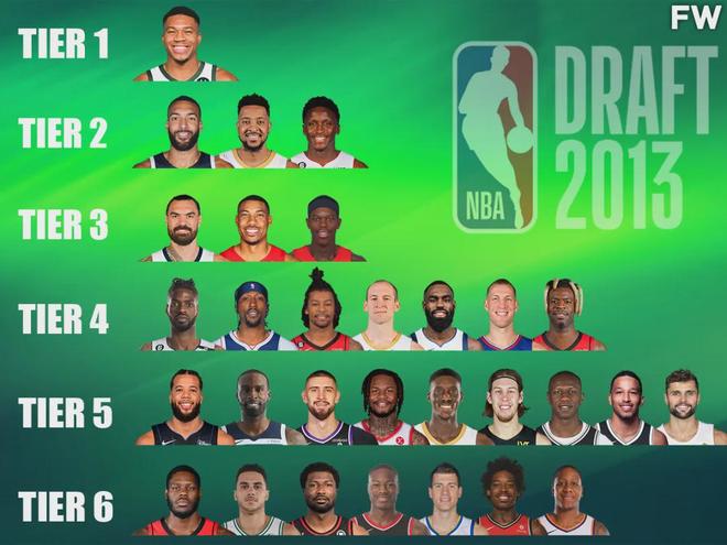 2013届的前7顺位,均已经离开NBA。如果重拍2013届新秀,奥拉迪波排第几?字母哥两个常规赛MVP,还有总冠军和FMVP,毫无疑问同届第一!戈贝尔4个DPOY,4次入选最佳阵容,8次入选最佳防守阵容,稳坐同届第二。