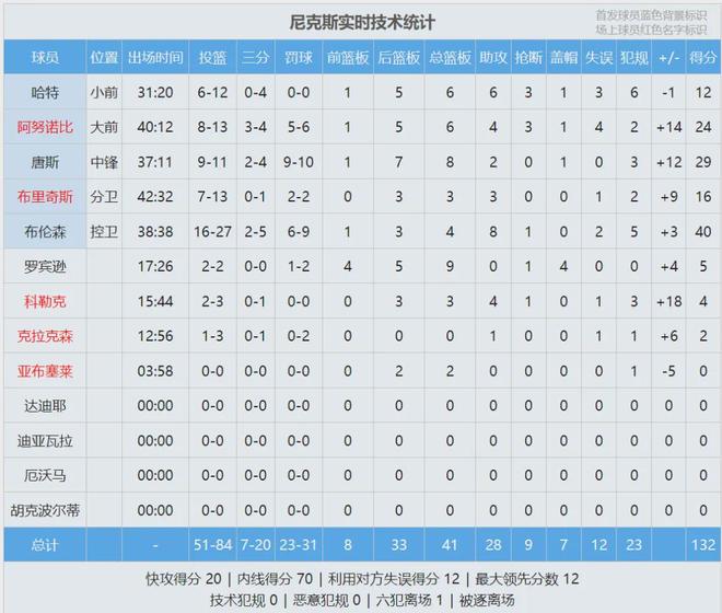 尼克斯后卫布伦森首发出战38分38秒,27投16中,三分5中2,罚球9中6,狂砍40分4篮板8助攻1抢断,得分创造个人赛季新高。有些球员总是在关键比赛中掉链子,比如加兰。也有球员是为了关键比赛而生,布伦森显然就是这种。NBA杯半决赛也要算作常规赛战绩,此役过后,尼克斯取得5连胜,18胜7负高居东部第二,仅落后活塞2个胜场。尼克斯球员非常低调,本赛季不声不响,已经要冲击东部榜首了。今天唐斯11投9中,高效砍下29分8板2助1帽。