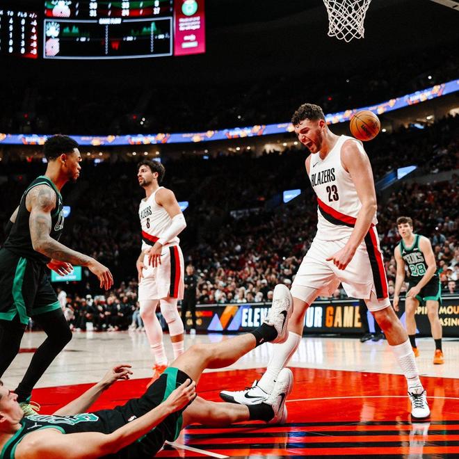 需要关注的是,布朗还创下了两大NBA第1的神迹。第1、杰伦布朗本月每场比赛(9场)都得到30+联盟唯一。第2、布朗的9场30+也是联盟本月最多。克林根18+18开拓者队内线核心克林根,在此役迎来了爆发。克林根出战34分钟,投篮10中8,三分球3中1,罚球2中1,怒砍18分18篮板(7前场篮板)1助攻的大号两双数据。克林根以80%的命中率轰下了高分,他还是此战的篮板王。并且,克林根的前场篮板领跑全场。在克林根的积极拼抢之下,波特兰篮板数据以48比40压制对手。克林根怒吼庆祝
