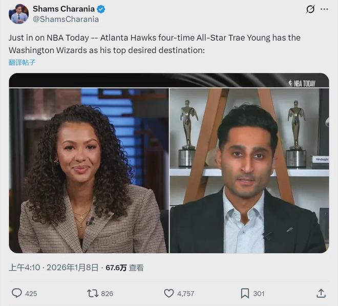 北京时间1月8日凌晨,NBA名记Shams Charania报道,特雷杨和团队将华盛顿奇才队指定为交易下家。今天老鹰主场对阵鹈鹕,由于交易保护,特雷杨并未出战。老鹰和奇才的交易框架已经敲定,交易主体是特雷杨和CJ-麦科勒姆。